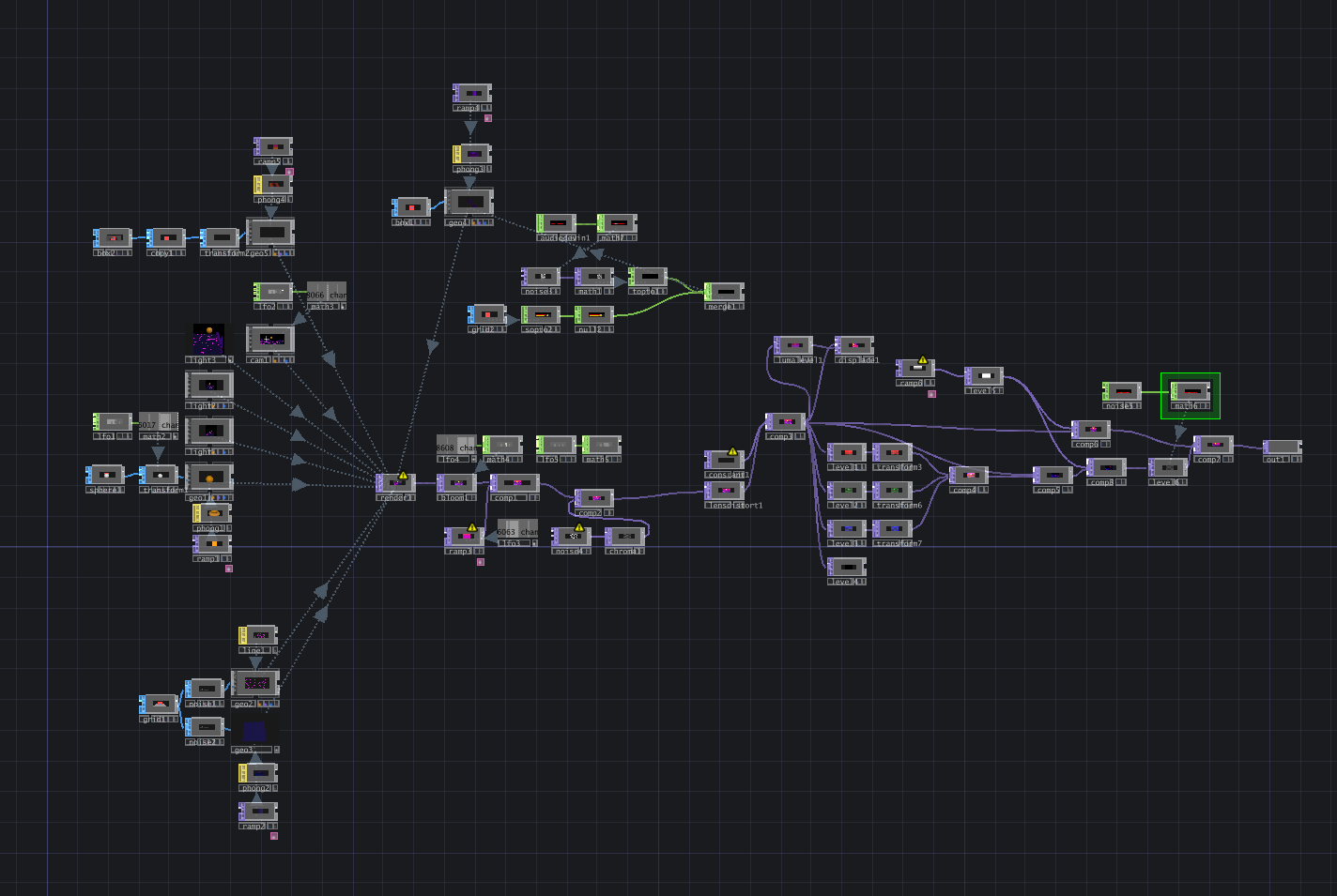 I designed and developed a procedurally animated retro sunset scene in TouchDesigner inspired by vaporwave and 90s digital aesthetics. Using instancing, gradient mapping, and animation, I created a looping visual featuring a dynamic sun, shifting color transitions, and stylized landscape elements to simulate a dreamy, nostalgic atmosphere. The project focused on procedural generation and blending use of a node-based program with intentional art direction.